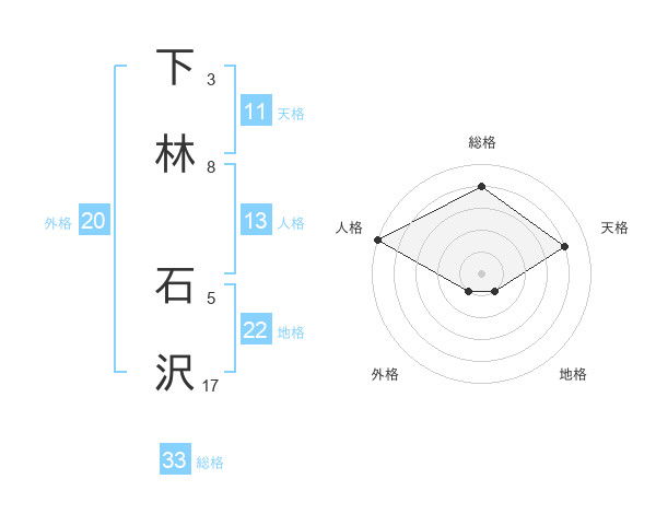 下林 石沢さんの総格は33画の4点!