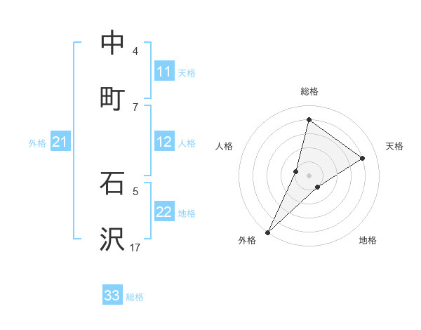 中町 石沢さんの総格は33画の4点!