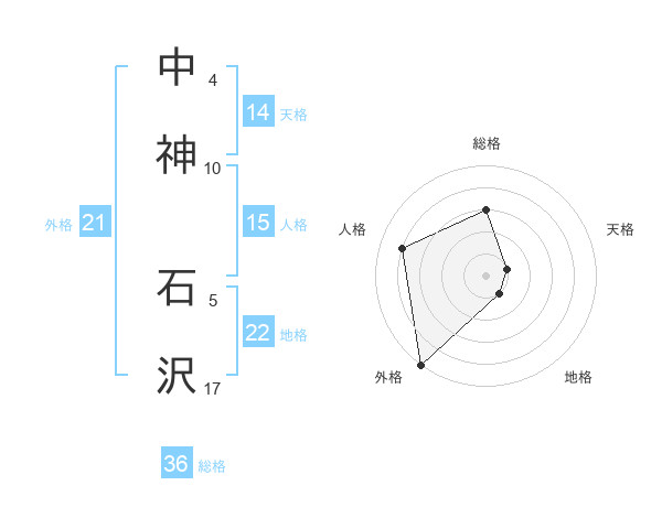 中神 石沢さんの外格は21画の5点!