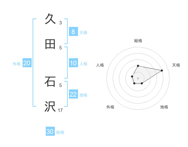 久田 石沢さんの総格は30画の2点!