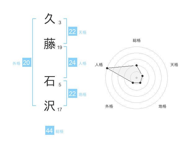 久藤 石沢さんを姓名の画数から五運を鑑定