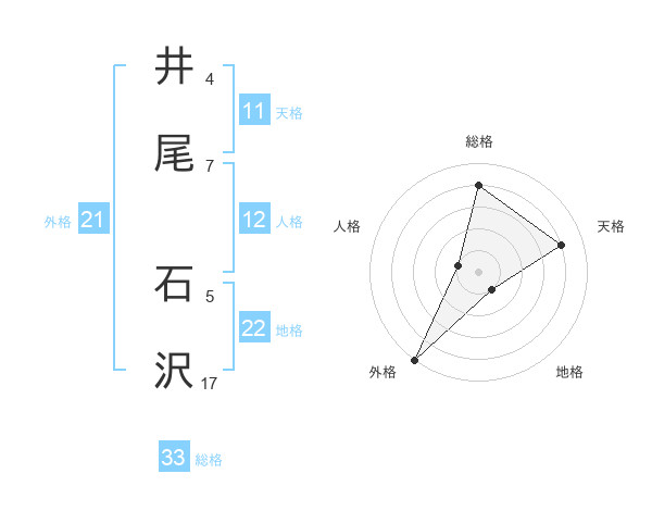 井尾 石沢さんの総格は33画の4点!