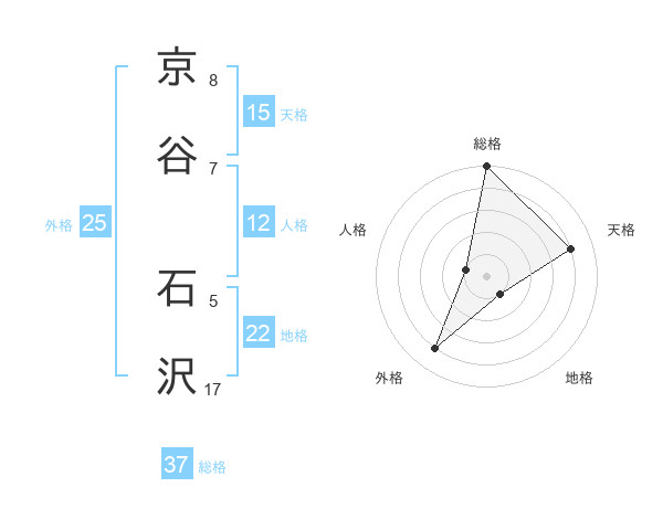 京谷 石沢さんを姓名の画数から五運を鑑定