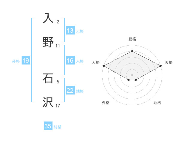 入野 石沢さんの総格は35画の4点!