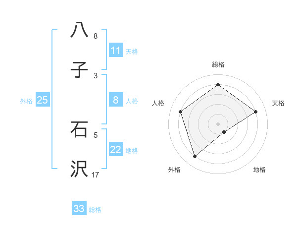 八子 石沢さんの地格は22画の1点!