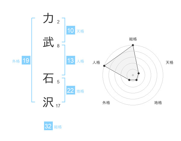 力武 石沢さんの総格は32画の5点!