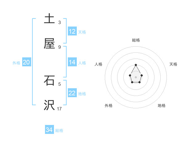土屋 石沢さんの地格は22画の1点!