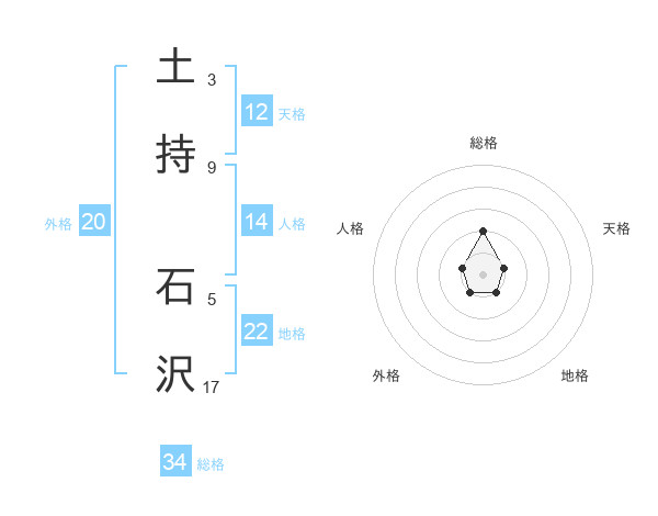 土持 石沢さんを姓名の画数から五運を鑑定