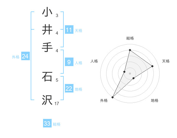 小井手 石沢さんを姓名の画数から五運を鑑定