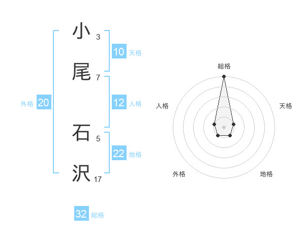 小尾 石沢さんを姓名の画数から五運を鑑定