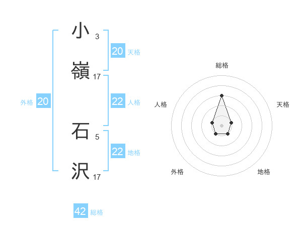 小嶺 石沢さんの地格は22画の1点!