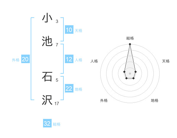 小池 石沢さんの総格は32画の5点!