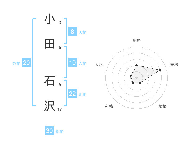 小田 石沢さんの地格は22画の1点!