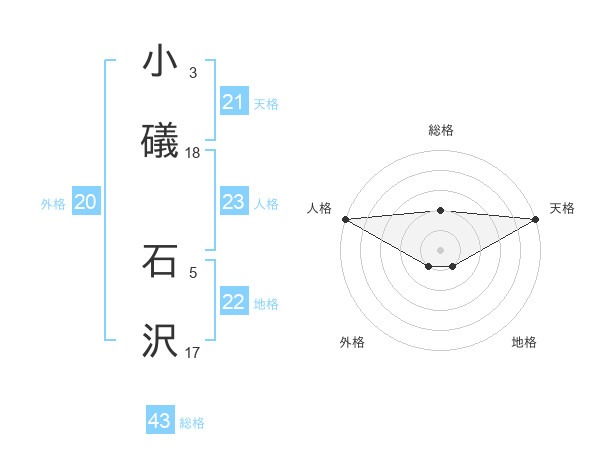 小礒 石沢さんを姓名の画数から五運を鑑定