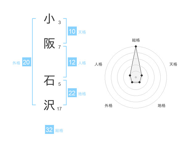 小阪 石沢さんの総格は32画の5点!