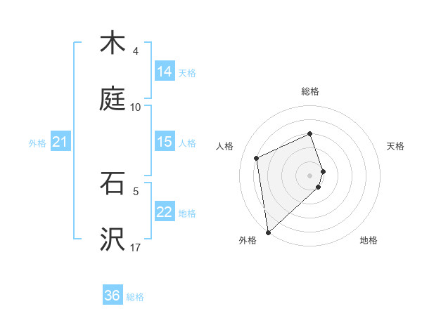 木庭 石沢さんを姓名の画数から五運を鑑定