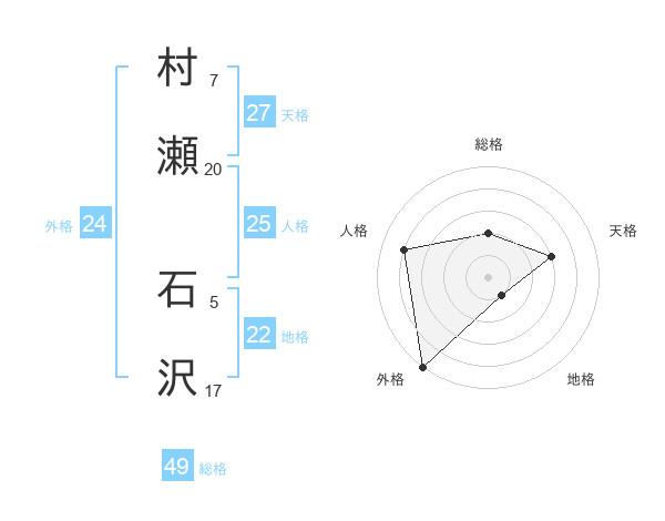 村瀬 石沢さんを姓名の画数から五運を鑑定