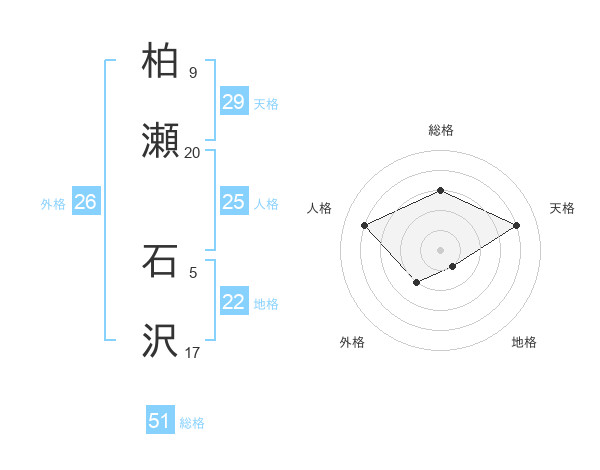 柏瀬 石沢さんの総格は51画の3点!