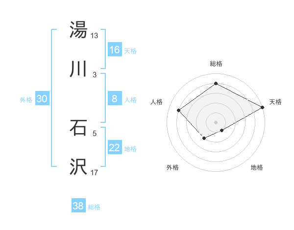 湯川 石沢さんの天格は16画の5点!