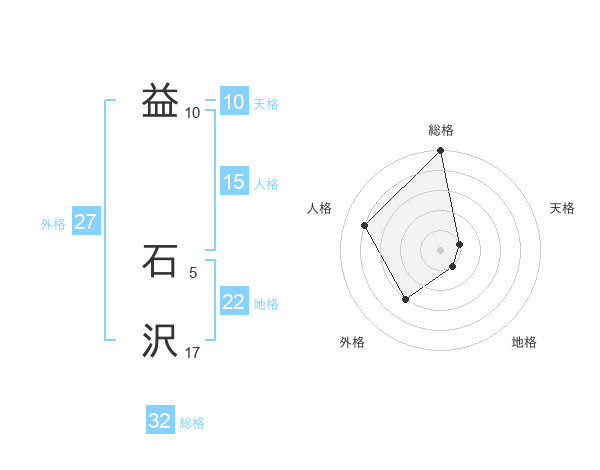 益 石沢さんの地格は22画の1点!