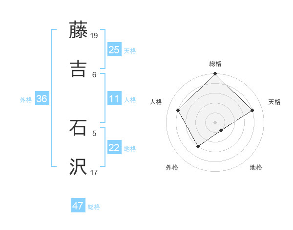 藤吉 石沢さんの総格は47画の5点!