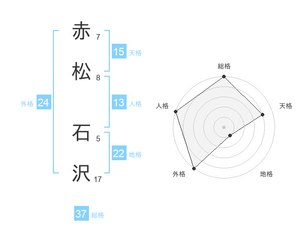赤松 石沢さんの総格は37画の5点!