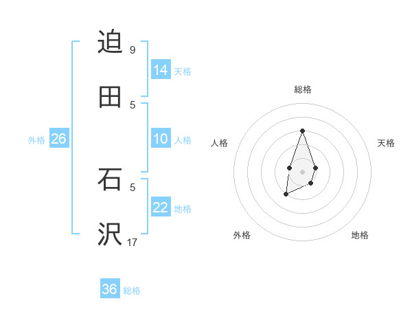 迫田 石沢さんを姓名の画数から五運を鑑定