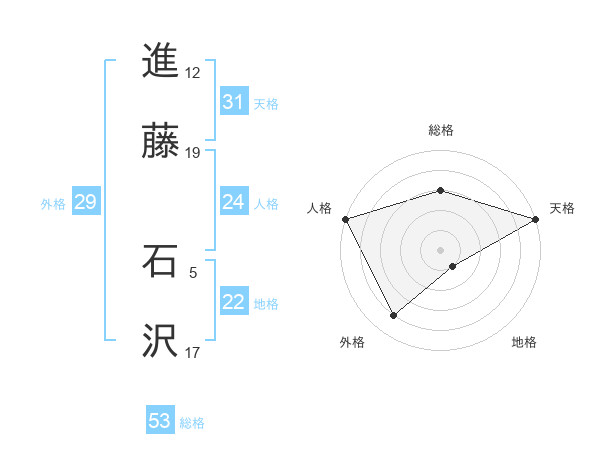 進藤 石沢さんの総格は53画の3点!
