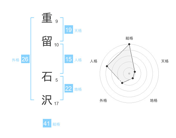 重留 石沢さんの総格は41画の5点!
