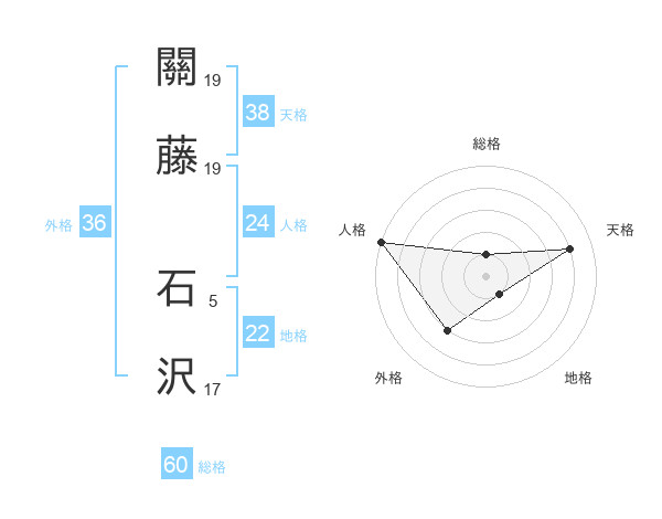 關藤 石沢さんの天格は38画の4点!