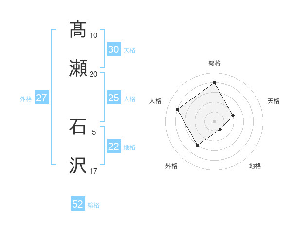 髙瀬 石沢さんを姓名の画数から五運を鑑定