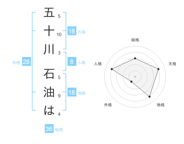 五十川 石油はさんを姓名の画数から五運を鑑定
