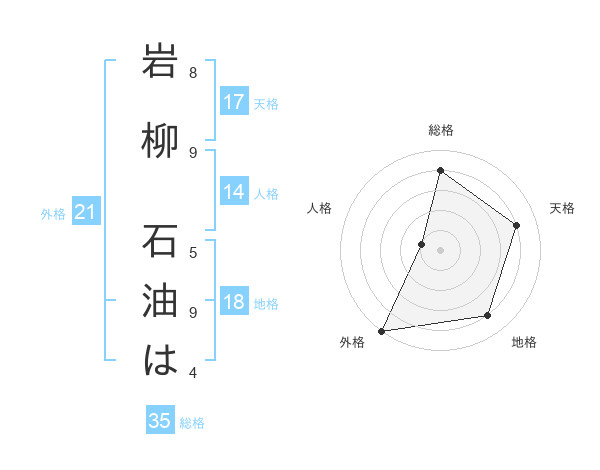 岩柳 石油はさんの総格は35画の4点!