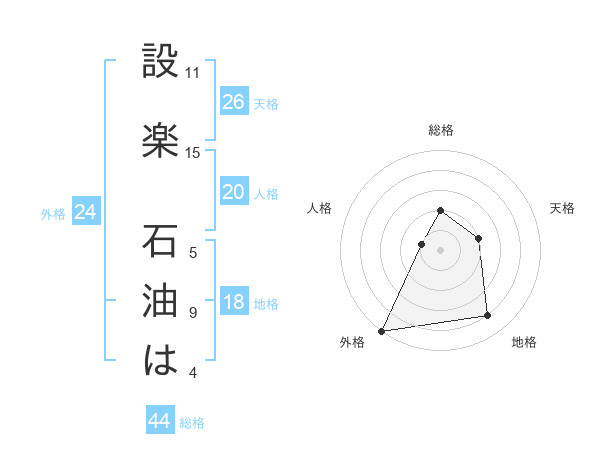 設楽 石油はさんの外格は24画の5点!