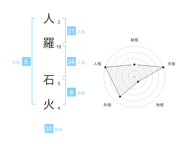 人羅 石火さんの総格は30画の2点!