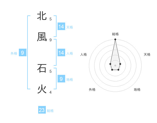 北風 石火さんの総格は23画の5点!