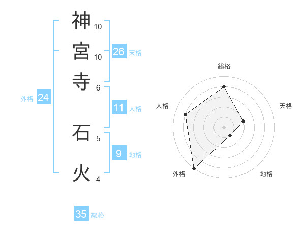 神宮寺 石火さんを姓名の画数から五運を鑑定