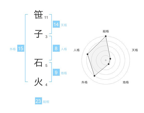 笹子 石火さんの総格は23画の5点!