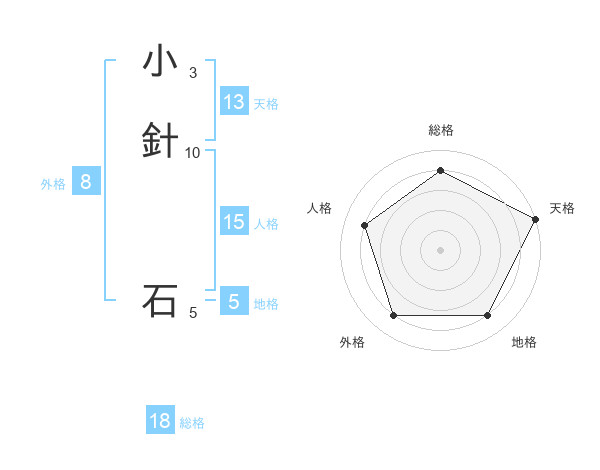 小針 石さんの天格は13画の5点!