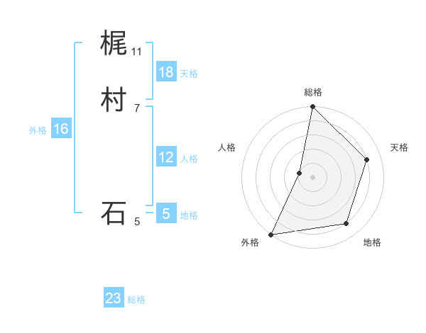 梶村 石さんの総格は23画の5点!