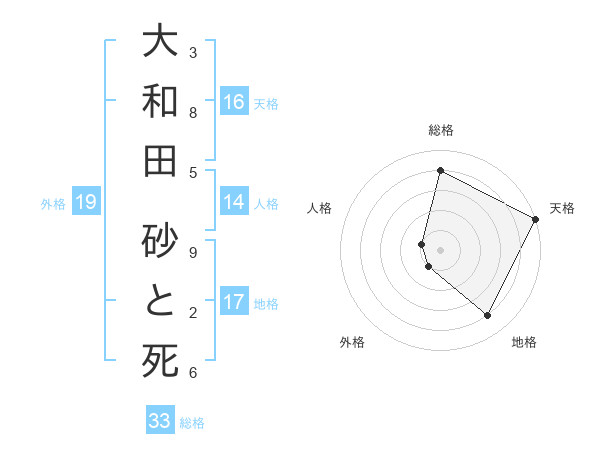 大和田 砂と死さんの外格は19画の1点!