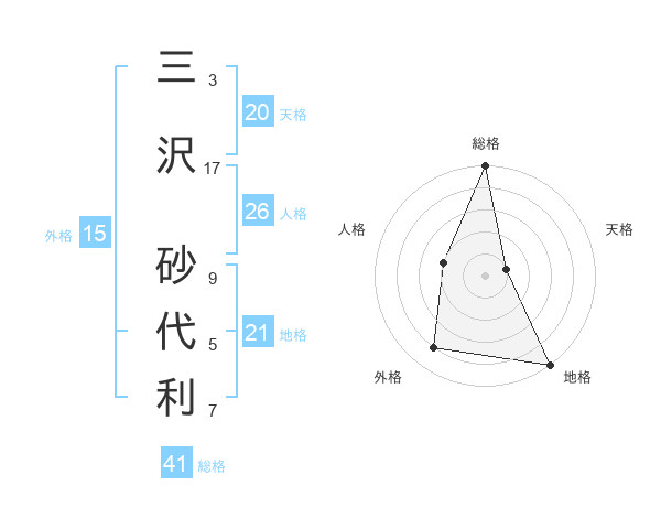 三沢 砂代利さんを姓名の画数から五運を鑑定