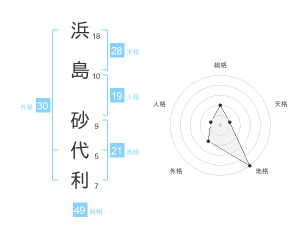 浜島 砂代利さんを姓名の画数から五運を鑑定