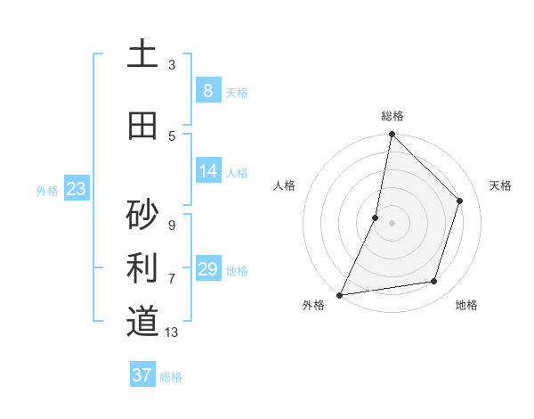 土田 砂利道さんを姓名の画数から五運を鑑定