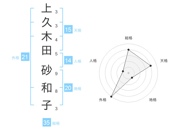 上久木田 砂和子さんを姓名の画数から五運を鑑定
