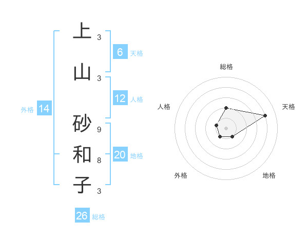 上山 砂和子さんの総格は26画の2点!