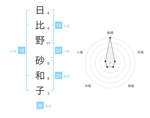 日比野 砂和子さんを姓名の画数から五運を鑑定