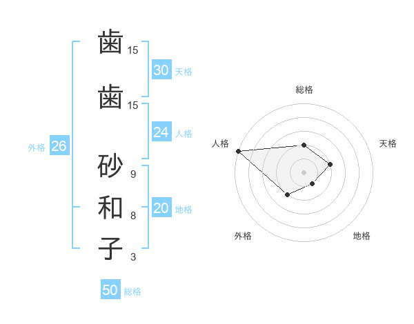 歯歯 砂和子さんの外格は26画の2点!