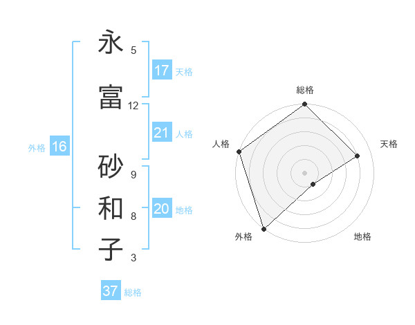 永富 砂和子さんの総格は37画の5点!