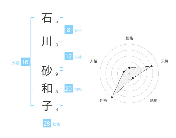 石川 砂和子さんを姓名の画数から五運を鑑定